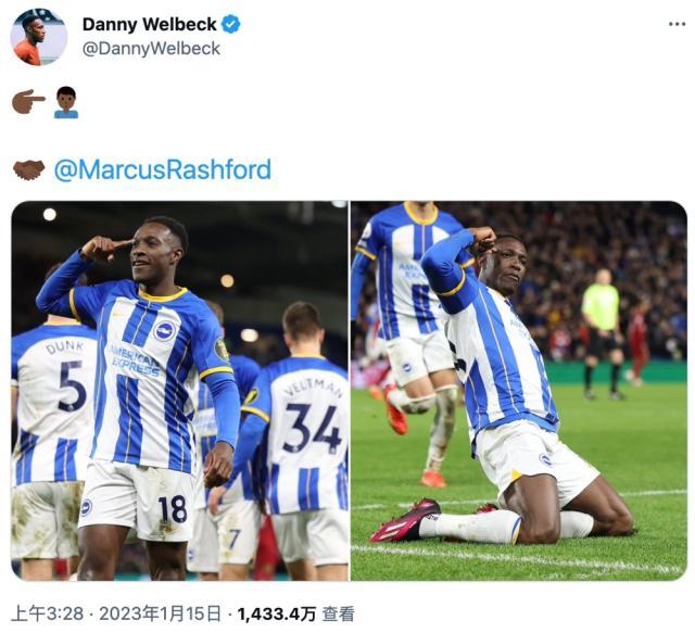拉什福德近期状态大勇,顺带连他的庆祝动作也热度飙升,引来多位同行的模仿,最近包括萨卡、韦尔贝克、若埃林通、亚伯拉罕和基米希等球员进球后,都做起来拉师傅手指脑袋的庆祝动作。