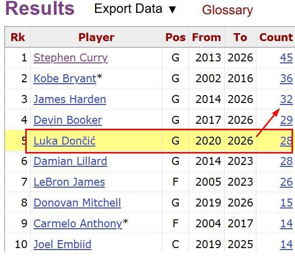 此役东契奇发挥最好的时刻是第三节,他在公牛起势将比分缩小到1分时接管比赛,单节9投6中,三分6中4罚球6中4,狂砍20分3篮板2助攻,据统计这是东契奇职业生涯第29次单节砍下20分,追平德文布克并列NBA历史第四位,排在他前面的就是初代持球大核詹姆斯哈登,哈登目前一共有32次单节20+表现,东契奇仅差4次就能完成对哈登的超越,按照东契奇本赛季的状态,相信用不了多久就能完成超越!