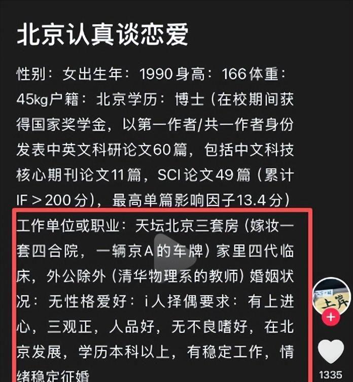 她却轻描淡写地说了三点:男方本科及以上学历、年龄25-35岁、愿意长期在北京发展。